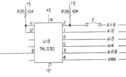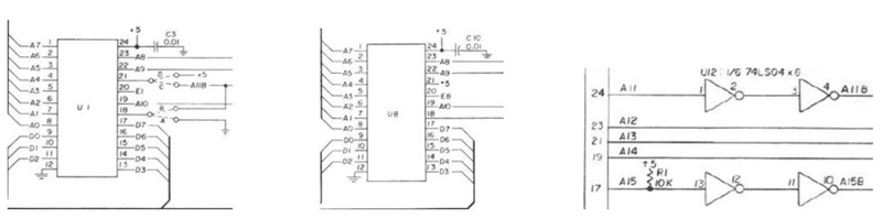 Das rechte Bild zeigt die doppelte Invertierung der Adressleitungen A11 zu A11B und A15 zu A15B
