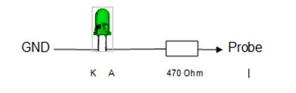 Der Masseanschluss des Signalverfolgers wird mit GND (TP3) des Sound-Boards verbunden.