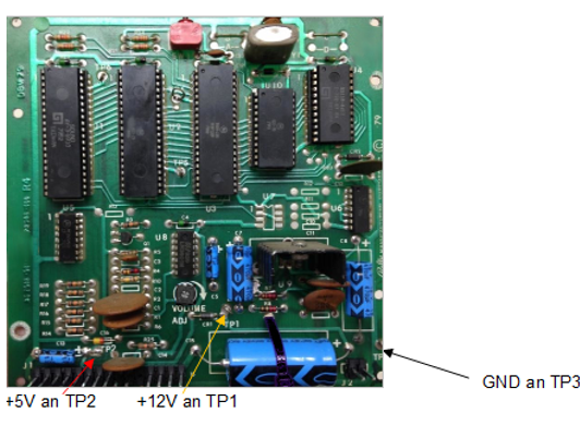 Eine Überprüfung dieser Spannungen mittels eines Digital-Multimeters sollte die erste Maßnahme sein, wenn das Sound-Board keine Töne bzw. Geräusche produziert.