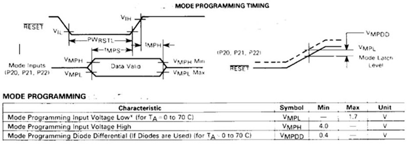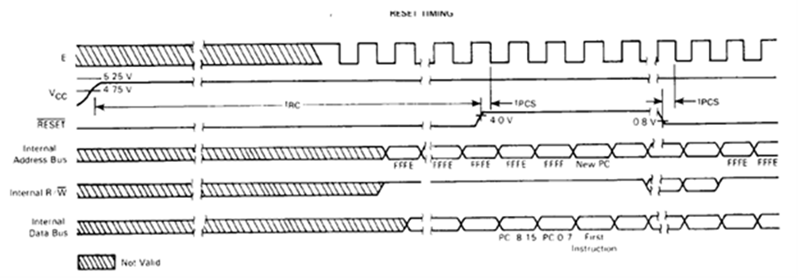 Im Reset Timing Diagramm ist ersichtlich, dass der Prozessor nach dem Einschalten auf die beiden Adressen FFFEh und FFFFh zugreift, an denen sich die Startadresse für den Programmablauf befindet.