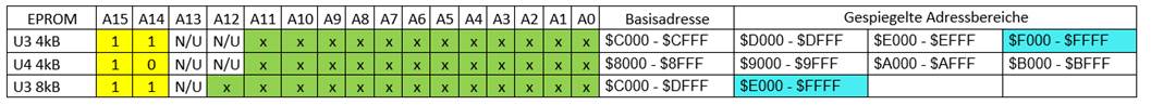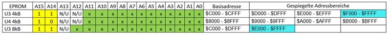 Somit wird ein 2732 in Position U3 immer adressiert, wenn A14 und A15 High-Pegel führen.