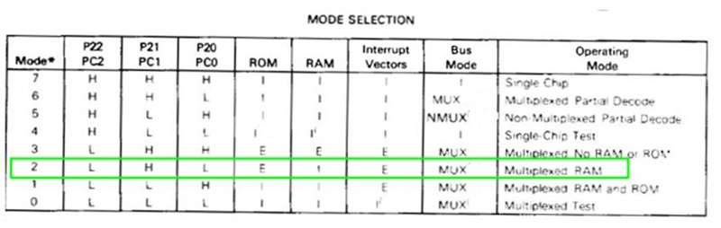 Der MC6803 nutzt im Betriebsmodus 2 die Portleitungen P30 – P37 sowohl für die unteren 8-Adressleitungen A0 – A7 als auch für die Datenleitungen D0 – D7. Wird externe Peripherie, wie bspw. ein ROM angesprochen, muss die Adressinformation auf A0 – A7 gepuffert werden, um direkt im Anschluss die Dateninformation über D0 – D7 senden * bzw. empfangen zu können.